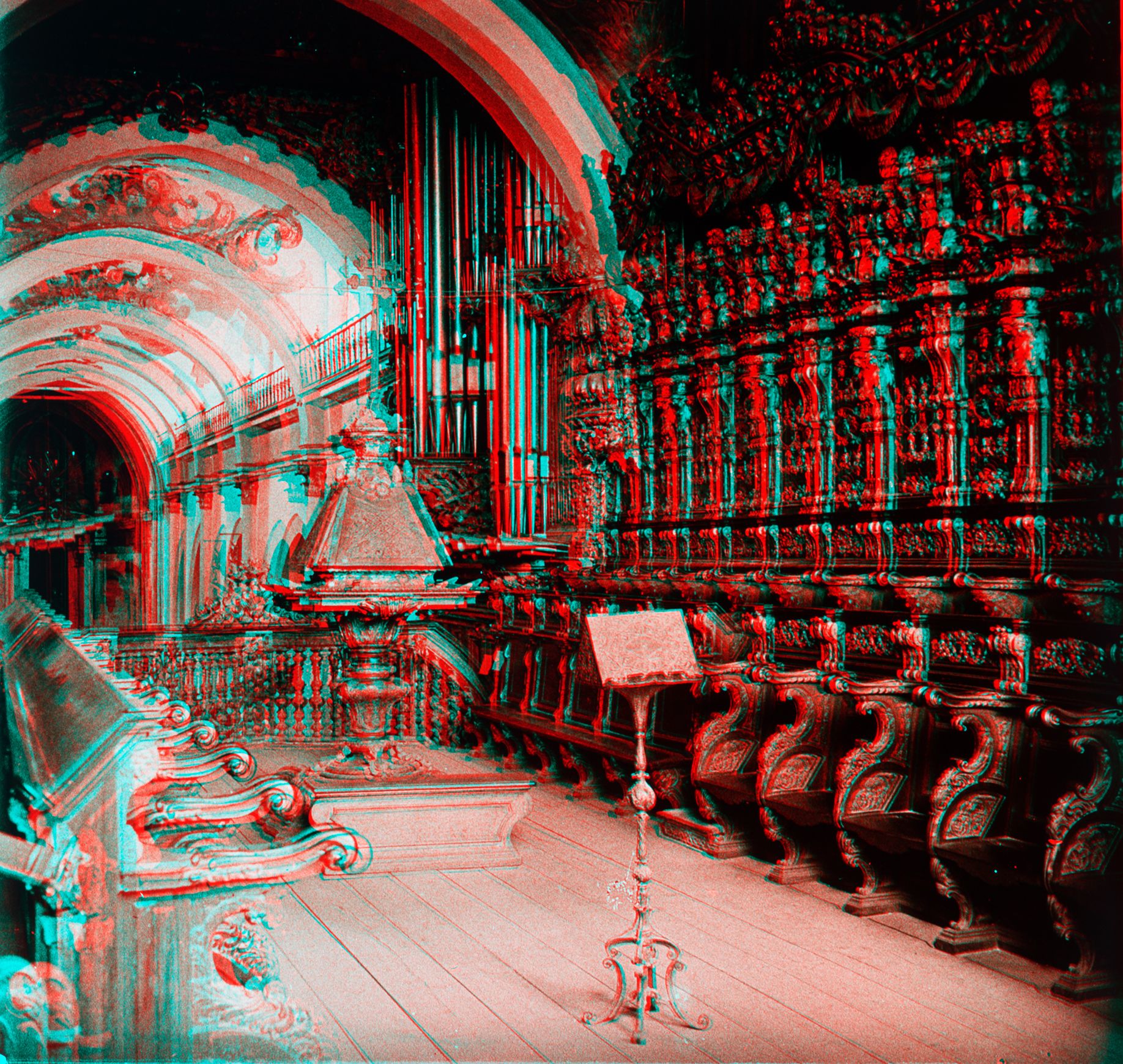[Number 1018; Date 22 September 1919; Hour 14 1/4; Light Slightly overcast sun; Lens Vérascope off-center; Diaphragm 8; Medium Imperial Ortho N.F. a.H.; Subject matter Braga. Cathedral. Choir; Exposure 15’’; Development Watkins Thermo Metol-Quinol].